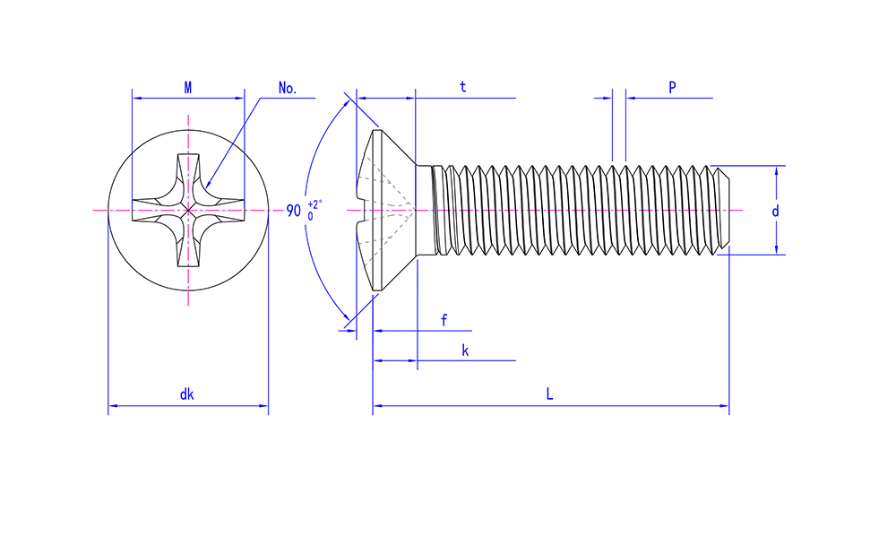 DIN965 90° 접시머리 접시머리 나사(H형 십자가 포함)