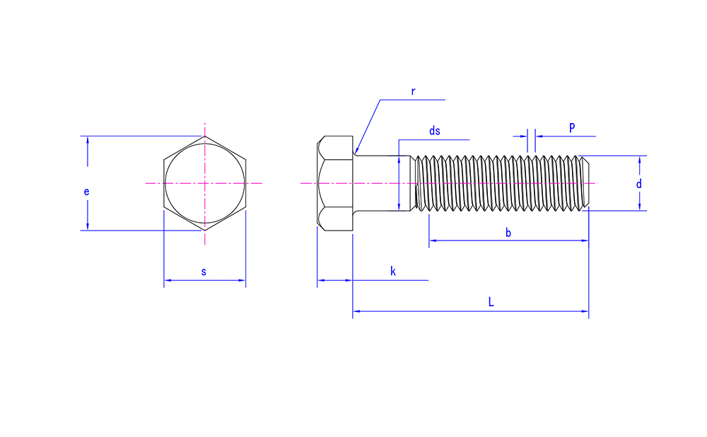 ASME/ANSI B18.2.1(ANSI) 스테인리스강 육각 머리 볼트