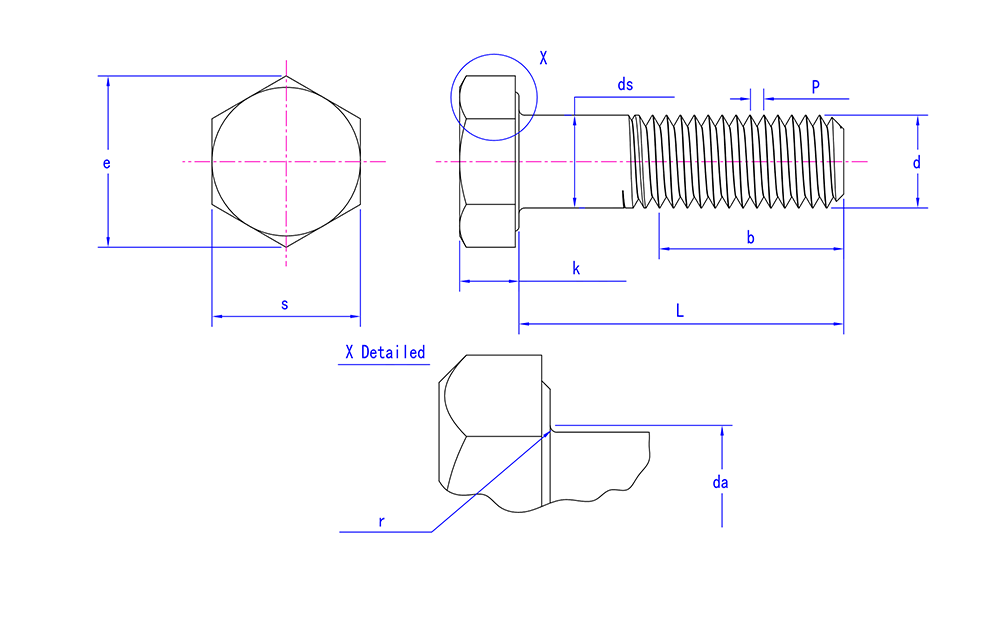 | 머리 특징 | 생크 직경 > 주요 나사 직경 |